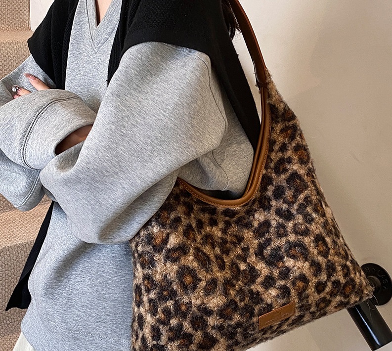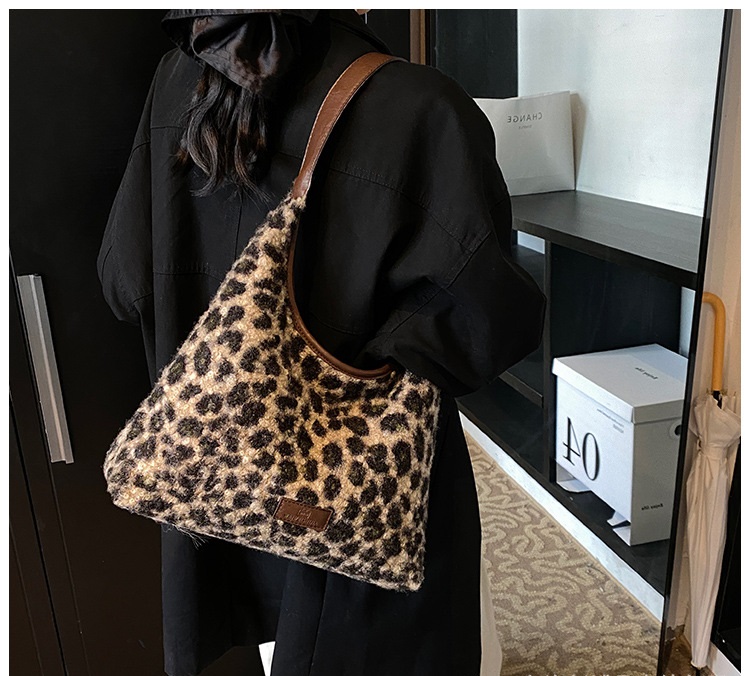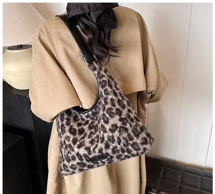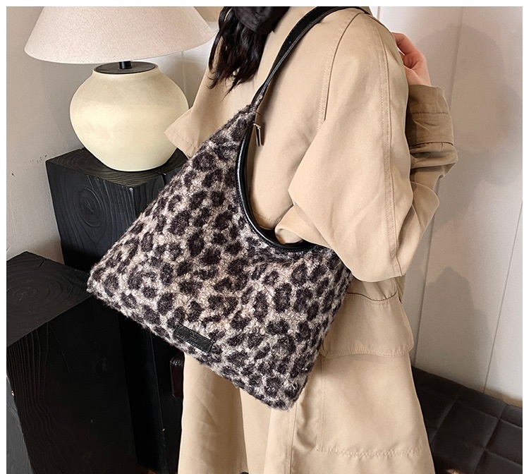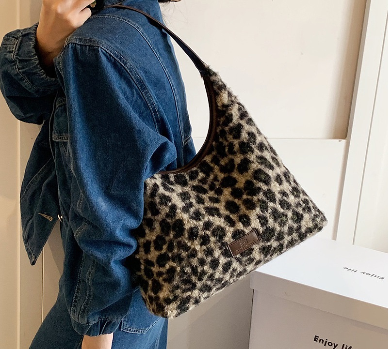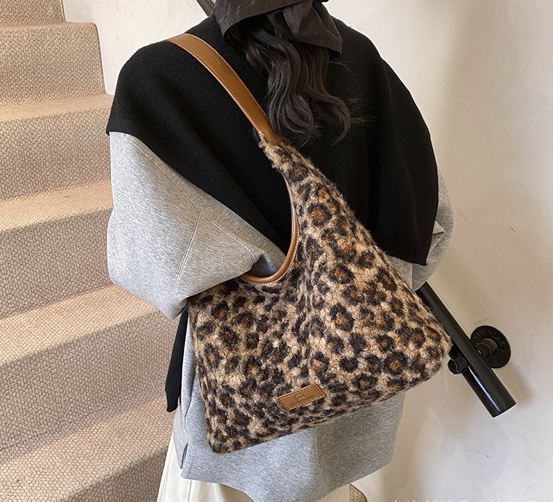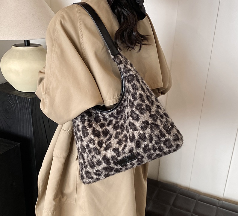 Ladies’ Plush Casual Bag Leopard Print Niche Alternative