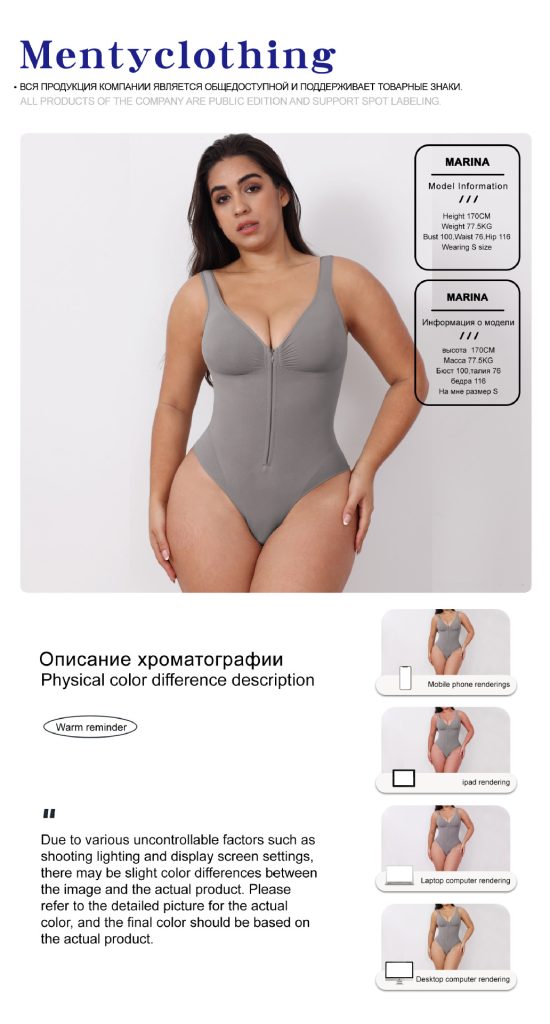 Plus Size Tummy Control Zipper Front Shapewear Bodysuit